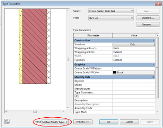 Seleccionamos el muro y dentro de la vista preliminar de sus propiedades, cambiamos a una vista en corte – View:Section.
