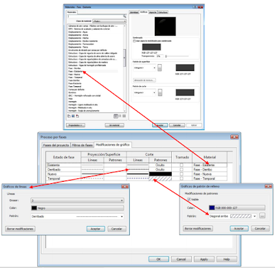 relleno de patrón de superficie y cortar patrones y activar o desactivar la visibilidad